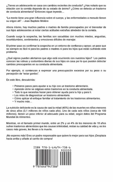 ¿Tienes un adolescente en casa con cambios recientes de conducta? ¿Has notado que su relación con la comida depende de su estado de ánimo? ¿Cómo se detecta un trastorno de conducta alimentaria? Entonces sigue leyendo... "La mente tiene una gran influencia sobre el cuerpo, y las enfermedades a menudo tienen su origen allí". - Jean Baptiste Molière Ahora mismo, hay muchos padres o madres de familia preocupados por el bienestar de sus hijos adolescentes al notar ciertas actitudes extrañas alrededor de la comida. Cuando surge la sospecha, las familias son sacudidas con muchos miedos, angustias, incertidumbres, sentimientos y emociones difíciles de manejar. El primer paso es confirmar la sospecha en un entorno de confianza y apoyo; un paso que no siempre es fácil ni para los padres o madres ni para los hijos que están sufriendo este problema. ¿Qué signos pueden alertarnos que algo está ocurriendo con nuestros hijos? Los padres conocen las rutinas y costumbres diarias de sus hijos en casa por lo que pueden detectar cambios preocupantes en su conducta alimentaria. Por ejemplo, si comienzan a expresar una preocupación excesiva por su peso o su percepción de "estar gordos". En este libro, descubrirás: Primeros pasos para ayudar a su hijo con un trastorno alimentario. Aprende cómo se originan estos trastornos en la conducta alimentaria. Todo lo que necesitas hacer para obtener ayuda para tu hijo y para ti. Los retos de diagnosticar un trastorno alimentario. Cómo aplicar el enfoque familiar al tratamiento de los trastornos alimentarios. Y mucho más... La nutrición deficiente es la causa de casi la mitad (45%) de las muertes en niños menores de cinco años (3,1 millones de niños cada año). Uno de cada seis niños (cerca de 100 millones), tienen un peso inferior al adecuado para su edad, según datos del Programa Mundial de Alimentos. Mientras, en el llamado primer mundo, entre un 2% y un 4% de los menores de 18 años sufren trastornos alimenticios que les causan infelicidad, restan su calidad de vida y, en los casos más graves, les llevan a la muerte. ¡No esperes más! Eres un padre responsable que quiere lo mejor para sus hijos ¡Desplaza hacia arriba y añade al carrito de compra!