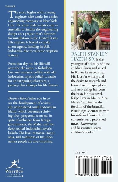 The story begins with a young engineer who works for a sales engineering company in New York City. He must make a quick trip to Australia to finalize the engineering design on a project that's destined for installation in the United States. His airplane is forced to make an emergency landing in Bali, Indonesia, due to volcanic eruption activity. From that day on, his life will never be the same. A forbidden love and romance collide with old Indonesian mystic beliefs to make for an intriguing adventure, a journey that changes his life forever. Desota's Island takes you in to see the development of a virtually uninhabited small Indonesian island, which becomes a thriving, free, perpetual economy in spite of influence from foreign governments, the Mafia, and the deep-rooted Indonesian mystic beliefs. The love, romance, happiness, and traditions of the Indonesian people are awe-inspiring.