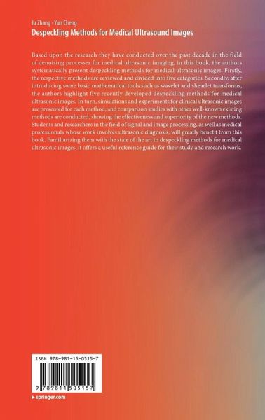 Introductions.- Despeckle Filters for Medical Ultrasound Images.- Wavelet and Fast Bilateral Filter Based Despeckling Method for Medical Ultrasound Images.- Despeckle Filtering of Medical Ultrasonic Images Using Wavelet and Guided Filter.- Despeckling Method for Medical Images Based on Wavelet and Trilateral Filter.- Nonsubsampled Shearlet and Guided Filter Based Despeckling Method for Medical Ultrasound Images.