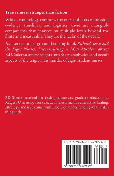 True crime is stranger than fiction. Criminology embraces the nuts and bolts of physical evidence, timelines, and logistics, but intangible components connect on multiple levels beyond the finite and measurable. They are the realm of the occult. As a sequel to the ground-breaking analysis of the physical evidence in Richard Speck and the Eight Nurses: Deconstructing A Mass Murder, author B.D. Salerno offers insights into the metaphysical and occult aspects of the tragic mass murder of eight student nurses. The author first presents an astrological analysis of the murders, followed by a riveting exposé of the numbers, dates, and occult symbols that surface frequently throughout the official narrative of this shocking crime. All of them reveal the involvement of a hidden hand - a dark cult who left behind their calling card in numbers, dates, and ritual imagery.