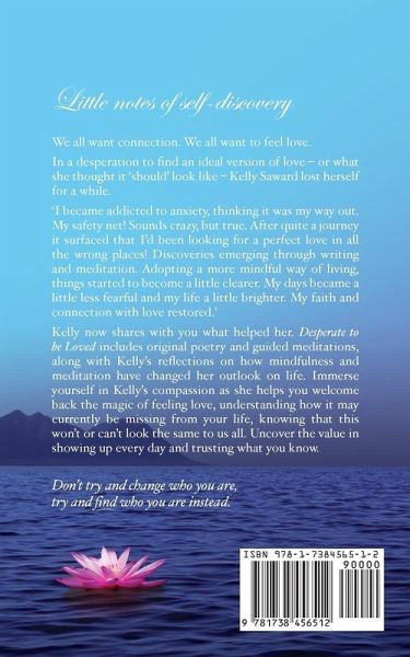 Little notes of self-discovery... We all want connection. We all want to feel love. In a desperation to find an ideal version of love - or what she thought it 'should' look like - Kelly Saward lost herself for a while. 'I became addicted to anxiety, thinking it was my way out. My safety net! Sounds crazy, but true. After quite a journey it surfaced that I'd been looking for a perfect love in all the wrong places! Discoveries emerging through writing and meditation. Adopting a more mindful way of living, things started to become a little clearer. My days became a little less fearful and my life a little brighter. My faith and connection with love restored.' Kelly now shares with you what helped her. 'Desperate to be Loved' includes original poetry and guided meditations, along with Kelly's reflections on how mindfulness and meditation have changed her outlook on life. Immerse yourself in Kelly's compassion as she helps you welcome back the magic of feeling love, understanding how it may currently be missing from your life, knowing that this won't or can't look the same to us all. Uncover the value in showing up every day and trusting what you know. Don't try and change who you are, try and find who you are instead.