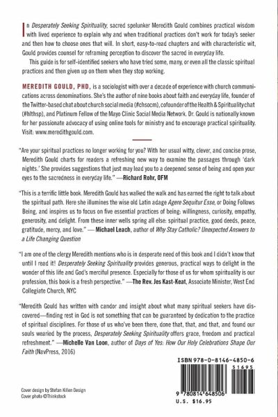 In "Desperately Seeking Spirituality, " sacred spelunker and sociologist Meredith Gould, combines practical wisdom with lived experience to explain why and when traditional practices don t work for today s seeker and then how to choose ones that will. In short, easy-to-read chapters and with characteristic wit, Gould provides counsel for reframing perception to discover the sacred in everyday life.