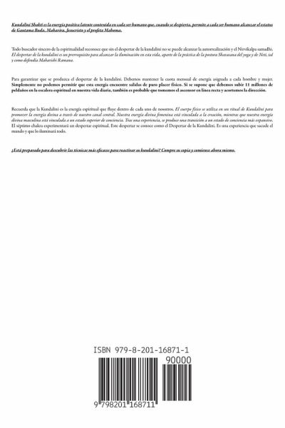 Kundalini Shakti es la energía positiva latente contenida en cada ser humano que, cuando se despierta, permite a cada ser humano alcanzar el estatus de Gautama Buda, Mahavira, Jesucristo y el profeta Mahoma. Todo buscador sincero de la espiritualidad reconoce que sin el despertar de la kundalini no se puede alcanzar la autorrealización y el Nirvikalpa samadhi. El despertar de la kundalini es un prerrequisito para alcanzar la iluminación en esta vida, aparte de la práctica de la postura Shavasana del yoga y de Neti, tal y como defendía Maharishi Ramana. Para garantizar que se produzca el despertar de la kundalini. Debemos mantener la cuota mensual de energía asignada a cada hombre y mujer. Simplemente no podemos permitir que esta energía encuentre salidas de puro placer físico. Si se supone que debemos subir 11 millones de peldaños en la escalera espiritual en nuestra vida diaria, también es probable que tomemos el ascensor en línea recta y acortemos la dirección. Recuerda que la Kundalini es la energía espiritual que fluye dentro de cada uno de nosotros. El cuerpo físico se utiliza en un ritual de Kundalini para promover la energía divina a través de nuestro canal central. Nuestra energía divina femenina está vinculada a la creación, mientras que nuestra energía divina masculina está vinculada a un estado superior de conciencia. Tras una experiencia, se produce una transición a un estado de conciencia más expansivo. El séptimo chakra experimentará un despertar espiritual. Este despertar se conoce como el Despertar de la Kundalini. Es una experiencia que sacude el mundo y que lo iluminará todo. ¿Está preparado para descubrir las técnicas más eficaces para reactivar su kundalini? Compre su copia y comience ahora mismo.