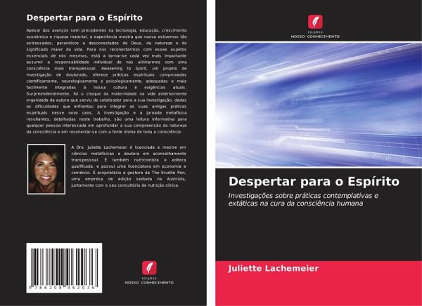 Apesar dos avanços sem precedentes na tecnologia, educação, crescimento económico e riqueza material, a experiência mostra que nunca estivemos tão estressados, paranóicos e desconectados de Deus, da natureza e do significado maior da vida. Para nos reconectarmos com esses aspetos essenciais de nós mesmos, está a tornar-se cada vez mais importante assumir a responsabilidade individual de nos alinharmos com uma consciência mais transpessoal. Awakening to Spirit, um projeto de investigação de doutorado, oferece práticas espirituais comprovadas cientificamente, neurologicamente e psicologicamente, adequadas e mais facilmente integradas à nossa cultura e exigências atuais. Surpreendentemente, foi o choque da maternidade na vida anteriormente organizada da autora que serviu de catalisador para a sua investigação, dadas as dificuldades que enfrentou para integrar as suas antigas práticas espirituais nesse novo caos. A investigação e a jornada metafísica resultantes, detalhadas neste trabalho, são uma leitura informativa para qualquer pessoa interessada em aprofundar a sua compreensão da natureza da consciência e em reconectar-se com a fonte divina de toda a consciência.