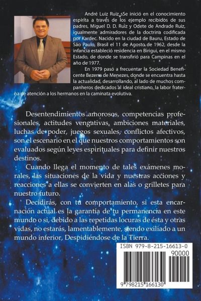 Desentendimientos amorosos, competencias profesionales, actitudes vengativas, ambiciones materiales, luchas de poder, juegos sexuales, conflictos afectivos, son el escenario en el que nuestros comportamientos son evaluados según leyes espirituales para definir nuestros destinos. Cuando llega el momento de tales exámenes morales, las situaciones de la vida y nuestras acciones y reacciones a ellas se convierten en alas o grilletes para nuestro futuro. Decidirás, con tu comportamiento, si esta encarnación actual es la garantía de tu permanencia en este mundo o si, debido a las repetidas locuras de ésta y otras vidas, no estarás, lamentablemente, siendo exiliado a un mundo inferior, Despidiéndose de la Tierra.