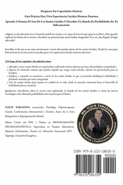 Despierta Tus Capacidades Oníricas Guía Práctica Para Vivir Experiencias Lúcidas Mientras Duermes Aprende A Domina El Arte De Los Sueños Lúcidos Y Descubre Un Mundo De Posibilidades En Tu Subconsciente ¿Alguna vez has deseado tener el control total de tus sueños y ser capaz de hacer lo que quieras en ellos?, ¿Has querido explorar los límites de tu mente y descubrir un potencial que nunca habías imaginado? Si es así, ¡has llegado al lugar adecuado! Este libro te llevará en un viaje emocionante a través del mundo onírico de los sueños lúcidos. Desde los conceptos básicos hasta las técnicas más avanzadas para vivir experiencias lúcidas mientras duermes. A lo largo de los capítulos, descubrirás cómo:Aprender a tener sueños lúcidos con regularidad, utilizando técnicas efectivas que han sido probadas y comprobadas. Superar los obstáculos comunes que pueden impedir que tengas sueños lúcidos, además de aprovecharlos para tu beneficio. Explorar y expandir tu conciencia a través de los sueños lúcidos, lo que te permitirá desbloquear habilidades y facultades mentales que nunca imaginado. Usar los sueños lúcidos para mejorar la calidad de tu vida, desde la sanación emocional hasta el desarrollo de habilidades físicas y mentales. Igualmente, descubrirás cómo la ciencia está explorando el mundo de los sueños lúcidos, y cómo las nuevas tecnologías están abriendo posibilidades aún mayores para el futuro. Este libro está diseñado para ser práctico, accesible y motivador, para que puedas empezar a tener sueños lúcidos desde la primera lectura. Ya que he incluido recursos adicionales, como comunidades en línea y libros recomendados, para que puedas seguir aprendiendo y explorando este vasto mundo onírico. Este libro es el recurso definitivo para cualquier persona que quiera dominar esta habilidad increíble. Así que, sin más preámbulo, te invito a ¡Descubrir el mundo de los sueños lúcidos y llevar tus habilidades mentales al siguiente nivel!
