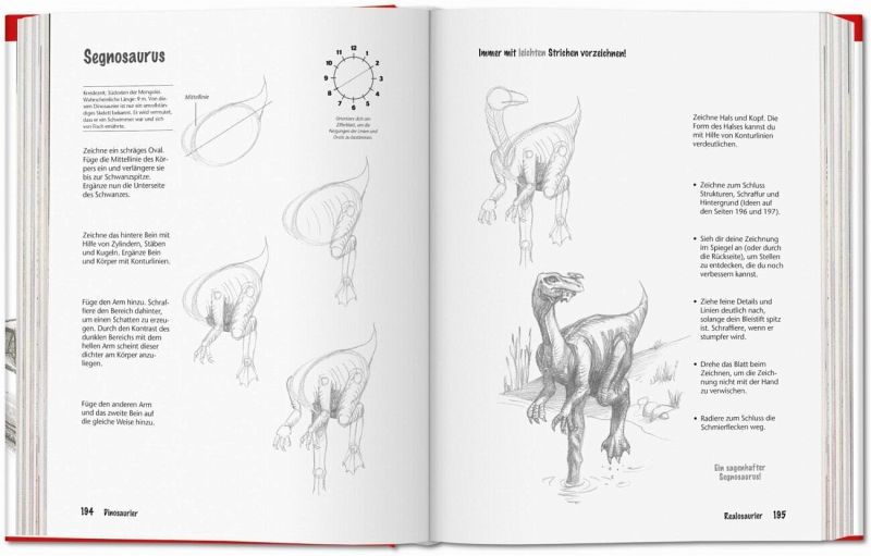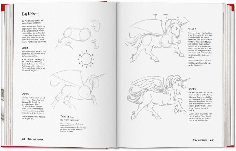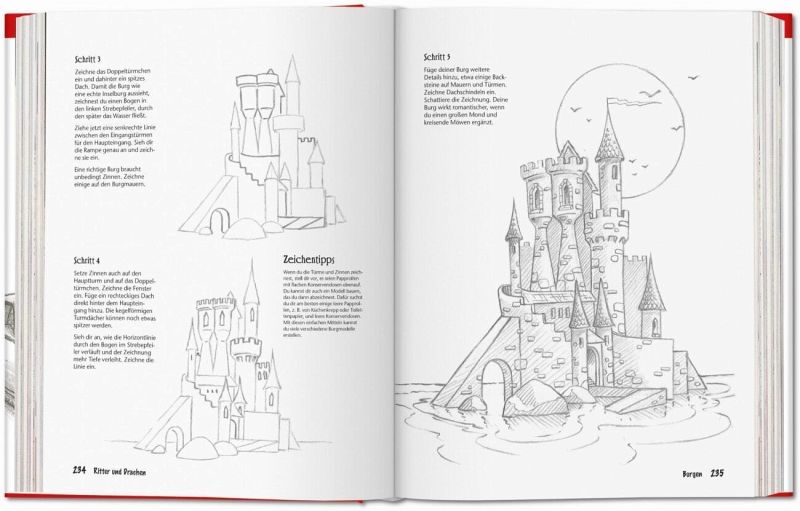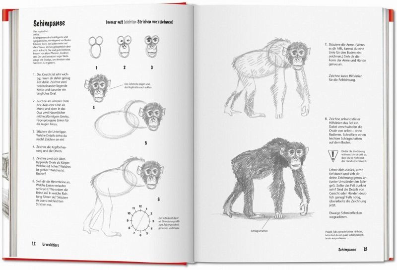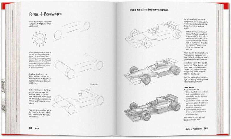 Neben vielen praktischen Hinweisen enthält dieser Band über 1.000 Abbildungen sowie kurze Einleitungstexte, die Interessantes über die abgebildeten Tiere enthalten. Dazu gibt es zahlreiche Tipps und Tricks, die den Lesern helfen, ihre Zeichnungen nach und nach realistischer wirken zu lassen - wie man etwa Autoräder zeichnet, die anatomischen Proportionen von Mensch und Tier erfasst oder realistische Hintergründe schafft. Schließlich erhalten die Lernenden eine Einführung in die Kunst der Perspektive, um ihren Zeichnungen räumliche Tiefe und Dreidimensionalität zu verleihen.