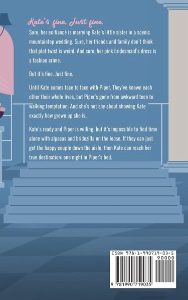 Kate's fine. Just fine. Sure, her ex-fiancé is marrying Kate's little sister in scenic Summit Springs. Sure, her friends and family don't think that plot twist is weird. And sure, her pink bridesmaid's dress is a fashion crime. But it's fine. Just fine. Until Kate comes face to face with Piper. They've known each other their whole lives, but Piper's gone from awkward teen to walking temptation. And she's not shy about showing Kate exactly how grown up she is. Kate's ready and Piper is willing, but it's impossible to find time alone with alpacas and bridezilla on the loose. If they can just get the happy couple down the aisle, then Kate can reach her true destination: one night in Piper's bed.