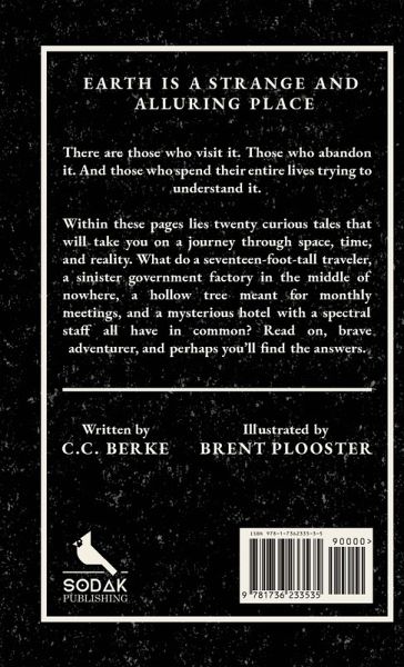 Earth is a strange and alluring place. There are those who visit it. Those who abandon it. And those who spend their entire lives trying to understand it. Within these pages lies twenty curious tales that will take you on a journey through space, time, and reality. What do a seventeen-foot-tall traveler, a sinister government factory in the middle of nowhere, a hollow tree meant for monthly meetings, and a mysterious hotel with a spectral staff all have in common? Read on, brave adventurer, and perhaps you'll find the answers.