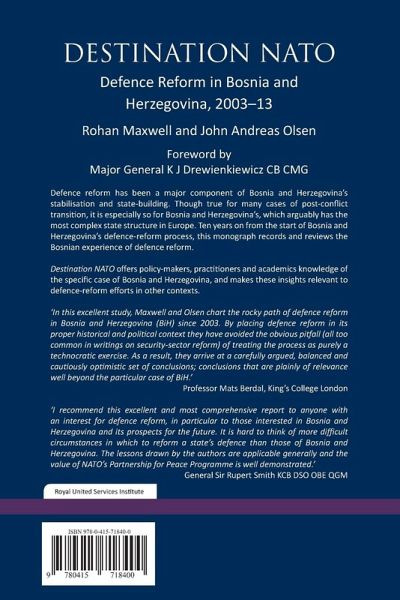 Defence reform has been a major component of Bosnia's stabilisation and nation-building. Though true for many cases of post-conflict transition, it is especially so for Bosnia, which arguably has the most complex state structure in Europe. Ten years on from the start of Bosnia's defence-reform process, Destination NATO records and reviews the Bosnian experience of defence reform. The monograph offers policy-makers, practitioners and academics knowledge of the specific case of Bosnia and Herzegovina, and makes these insights relevant to defence-reform efforts in other contexts. The research is based on original sources and an extensive set of interviews and talks with key individuals including ambassadors, ministers and civil servants, and other senior national and international actors, in addition to discussions with several hundred politicians at local levels, students and NGO representatives. The authors also use their first-hand knowledge and insights to complement the documentation, interviews and discussions.