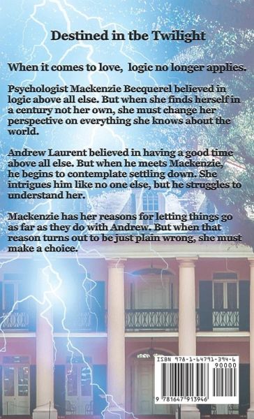 When it comes to love, logic no longer applies. Psychologist Mackenzie Becquerel believed in logic above all else. But when she finds herself in a century not her own, she must change her perspective on everything she knows about the world. Andrew Laurent believed in having a good time above all else. But when he meets Mackenzie, he begins to contemplate settling down. She intrigues him like no one else, but he struggles to understand her. Mackenzie has her reasons for letting things go as far as they do with Andrew. But when that reason turns out to be just plain wrong, she must make a choice. A fascinating time travel novel with a happily-ever-after that spans the centuries. A page-turning romance!