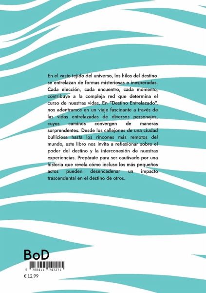En el vasto tejido del universo, los hilos del destino se entrelazan de formas misteriosas e inesperadas. Cada elección, cada encuentro, cada momento, contribuye a la compleja red que determina el curso de nuestras vidas. En "Destino Entrelazado", nos adentramos en un viaje fascinante a través de las vidas entrelazadas de diversos personajes, cuyos caminos convergen de maneras sorprendentes. Desde los callejones de una ciudad bulliciosa hasta los rincones más remotos del mundo, este libro nos invita a reflexionar sobre el poder del destino y la interconexión de nuestras experiencias. Prepárate para ser cautivado por una historia que revela cómo incluso los más pequeños actos pueden desencadenar un impacto trascendental en el destino de otros.