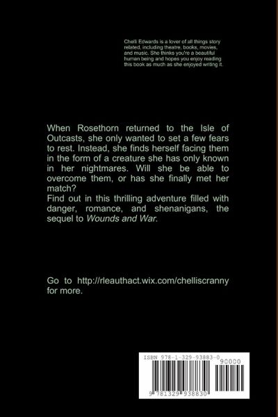 When Rosethorn returned to the Isle of Outcasts, she only wanted to set a few fears to rest. Instead, she finds herself facing them in the form of a creature she has only known in her nightmares. Will she be able to overcome them, or has she finally met her match? Find out in this thrilling adventure filled with danger, romance, and shenanigans, the sequel to Wounds and War.