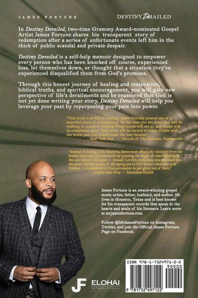 In Destiny Derailed: How to Get Your Life Back on Track by Leveraging Your Past and Repurposing Your Pain into Power, two-time Grammy Award-nominated Gospel Artist James Fortune shares his transparent story of redemption after a series of unfortunate events left him in the thick of public scandal and private despair. Destiny Derailed is a self-help memoir designed to empower every person who has been knocked off course, experienced loss, let themselves down, or thought that a situation they've experienced disqualified them from God's promises. Through this honest journey of healing and restoration, biblical truths, and spiritual encouragement, you will gain new perspective of life's derailments and be reassured that God is not yet done writing your story. Destiny Derailed will help you leverage your past by repurposing your pain into power.