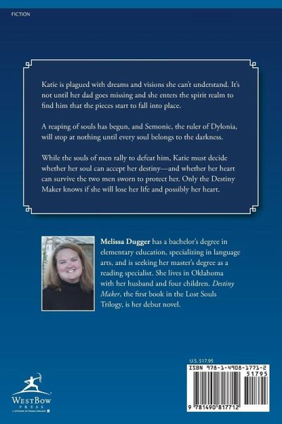 Katie is plagued with dreams and visions she can't understand. It's not until her dad goes missing and she enters the spirit realm to find him that the pieces start to fall into place. A reaping of souls has begun, and Semonic, the ruler of Dylonia, will stop at nothing until every soul belongs to the darkness. While the souls of men rally to defeat him, Katie must decide whether her soul can accept her destiny-and whether her heart can survive the two men sworn to protect her. Only the Destiny Maker knows if she will lose her life and possibly her heart.