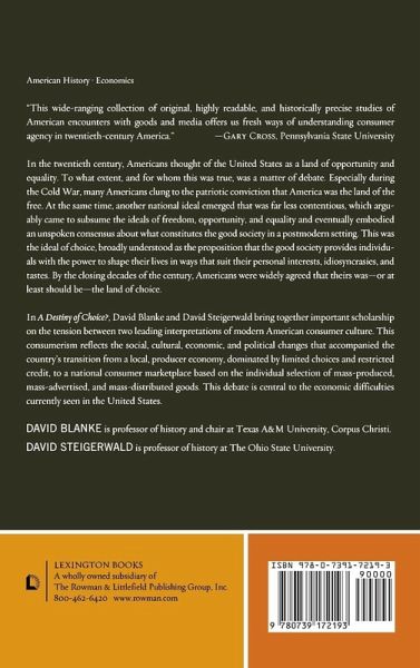 In the twentieth century, Americans thought of the United States as a land of opportunity and equality. To what extent and for whom this was true was, of course, a matter of debate, however especially during the Cold War, many Americans clung to the patriotic conviction that America was the land of the free. At the same time, another national ideal emerged that was far less contentious, that arguably came to subsume the ideals of freedom, opportunity, and equality, and that eventually embodied an unspoken consensus about what constitutes the good society in a postmodern setting. This was the ideal of choice, broadly understood as the proposition that the good society provides individuals with the power to shape the contours of their lives in ways that suit their personal interests, idiosyncrasies, and tastes. By the closing decades of the century, Americans were widely agreed that theirs was-or at least should be-the land of choice. In A Destiny of Choice?, David Blanke and David Steigerwald bring together important scholarship on the tension between two leading interpretations of modern American consumer culture. That modern consumerism reflects the social, cultural, economic, and political changes that accompanied the country's transition from a local, producer economy dominated by limited choices and restricted credit to a national consumer marketplace based on the individual selection of mass-produced, mass-advertised, and mass-distributed goods. This debate is central to the economic difficulties seen in the United States today.