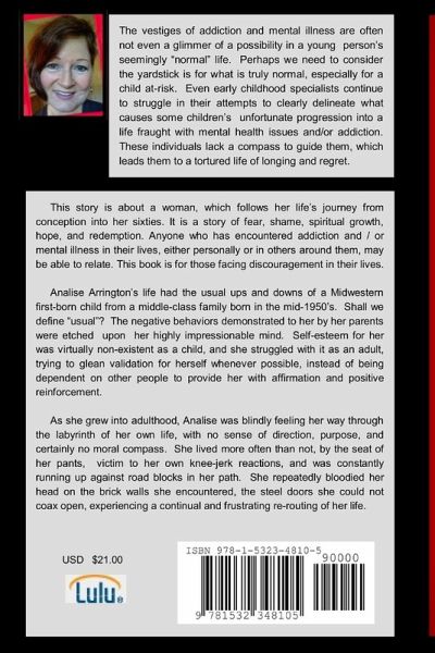 This story follows a young woman's life journey from conception into her sixties. It is a story of fear, shame, hope, and redemption. Anyone who has encountered addiction and/or mental illness in their lives, either themselves or others around them, may be able to relate. This book is also for all who get discouraged by what is dealt to them as they search for meaning in their lives. The story is of a Midwestern girl born in the 1950's. The negative behavior demonstrated to her by her parents were etched upon her impressionable mind. She had no self-esteem and struggled as an adult to glean validation for herself whenever possible. As an adult, she blindly felt her way through the labyrinth of her life, with no sense of direction, purpose, and certainly no moral compass. She fell victim to her own knee-jerk reactions and ran into road-blocks constantly. She often had to re-route her derailed life in trying to regain her balance and momentum. Hers was a destiny of detours.