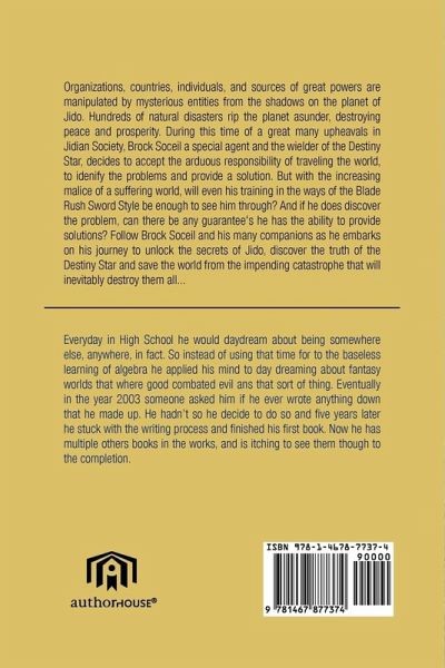 Organizations, countries, individuals, and sources of great powers are manipulated by mysterious entities from the shadows on the planet of Jido. Hundreds of natural disaster rip the planet asunder, destroying peace and prosperity. During this time of a great many upheavals in Jidian Society, Brock Soceil a special agent and the wielder of the Destiny Star, decides to accept the arduous responsibility of traveling the world, to idenify the problems and provide a solution. But with the increasing malice of a suffering world, will even his training in the ways of the Blade Rush Sword Style be enough to see him through? And if he does discover the problem, can there be any guarantee's he has the ability to provide solutions? Follow Brock Soceil and his many companions as he embarks on his journey to unlock the secrets of Jido, discover the truth of the Destiny Star and save the world from the impending catastrophe that will inevitably destroy them all...