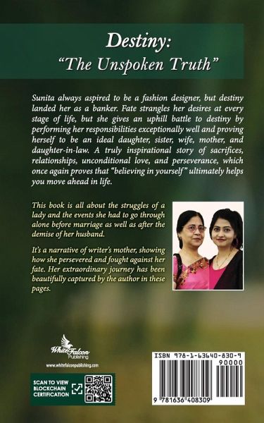 This book is all about the struggles of a lady and the events she had to go through alone before marriage as well as after the demise of her husband. It's a narrative of writer's mother, showing how she persevered and fought against her fate. Her extraordinary journey has been beautifully captured by the author in these pages. About the Author: Sunita always aspired to be a fashion designer, but destiny landed her as a banker. Fate strangles her desires at every stage of life, but she gives an uphill battle to destiny by performing her responsibilities exceptionally well and proving herself to be an ideal daughter, sister, wife, mother, and daughter-in-law. A truly inspirational story of sacrifices, relationships, unconditional love, and perseverance, which once again proves that "believing in yourself" ultimately helps you move ahead in life.