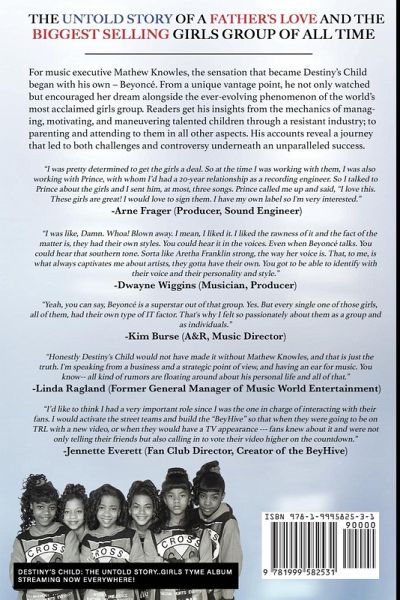 THE UNTOLD STORY OF A FATHER’S LOVE AND THE BIGGEST SELLING GIRLS GROUP OF ALL TIME For music executive Mathew Knowles, the sensation that became Destiny’s Child began with his own --- Beyoncé. From a unique vantage point, he not only watched but encouraged her dream alongside the ever-evolving phenomenon of the world’s most acclaimed girls group. Readers get his insights from the mechanics of managing, motivating, and maneuvering talented children through a resistant industry; to parenting and attending to them in all other aspects. His accounts reveal a journey that let to both challenges and controversy underneath an unparalleled success.…mehr