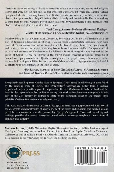 Evangelicals need help from Charles Haddon Spurgeon (1834-1892) in cultivating an ethic fueled by the rescuing work of Christ. This 19th-century Victorian-era pastor from a London megachurch helped provide a gospel compass that directed Christians in both the head and the heart in their approach to the troubles of society. His work assists American evangelicals in this part of the 21st century by addressing some of the significant issues of the present time: patriotism/nationalism, racism, and religious liberty. This book analyzes the sermons of Charles Spurgeon to construct a gospel-centered ethic toward the vulnerable and downtrodden of society. Many of the events and situations that marked his day parallels the circumstances of the present day. Spurgeon's approach (from both preaching and writing) provides the present evangelical world with a necessary template to move forward biblically and ethically.