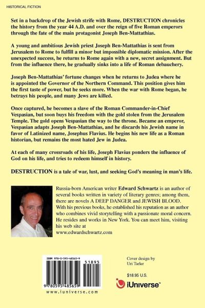 A young Jewish priest Joseph Ben Mattahias is sent to Rome to fulfill a minor, but impossible, diplomatic mission. After the unexpected success, he returns to Rome again with another, secret, assignment. But from the influence there, he gradually sinks into a life of Roman debauchery. His fortune changes when he returns to Judea and appointed the Governor of Nothern Command, which gives him the first taste of power. Seeking more, he betrays his troops when the war with Rome began, and many Jews are killed. Once captured, Joseph became Vespasian's slave, but buys his freedom with the gold stolen from the Jerusalem Temple. The gold opens Vespasian the way to the throne. Became an emperor, Vespasian adapted Joseph, who discarded his name in favor of Latinized Josephus Flavius. He begins his new life as a Roman historian and tries to redeem his name in history, but remains the most hated Jew in Judea. DESTRUCTION is a tale of war, lust and seeking God's meaning in man's life.