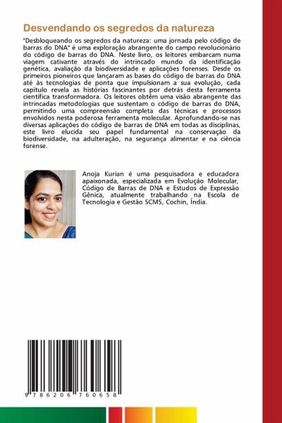 "Desbloqueando os segredos da natureza: uma jornada pelo código de barras do DNA" é uma exploração abrangente do campo revolucionário do código de barras do DNA. Neste livro, os leitores embarcam numa viagem cativante através do intrincado mundo da identificação genética, avaliação da biodiversidade e aplicações forenses. Desde os primeiros pioneiros que lançaram as bases do código de barras do DNA até às tecnologias de ponta que impulsionam a sua evolução, cada capítulo revela as histórias fascinantes por detrás desta ferramenta científica transformadora. Os leitores obtêm uma visão abrangente das intrincadas metodologias que sustentam o código de barras do DNA, permitindo uma compreensão completa das técnicas e processos envolvidos nesta poderosa ferramenta molecular. Aprofundando-se nas diversas aplicações do código de barras de DNA em todas as disciplinas, este livro elucida seu papel fundamental na conservação da biodiversidade, na adulteração, na segurança alimentar e na ciência forense.