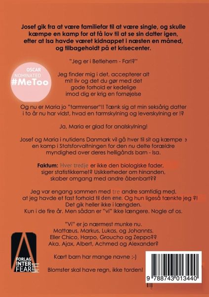 DET NYESTE TESTAMENTE Kongen af Danmark Bind to. Maria vs. Josef AARHUS HISTORIER FIKTION Hvis nogen skulle være i tvivl! Josef og Maria vil gå hver til sit i nutidens Danmark og kæmpe en kamp i Statsforvaltningen for den nu delte forældremyndighed over deres fælles helligåndsbarn Isa. (Undfanget ved IVF) Josef gik fra at være en samaritansk familiefar til at være hjælpeløs single! Og det viste sig, at han skulle kæmpe en kamp for at få lov til at se sin datter igen! Efter at hun havde været kidnappet i næsten en måned, og tilbageholdt på et krisecenter. "Jeg er i Betlehem* - Far!?" *Oversat -…mehr