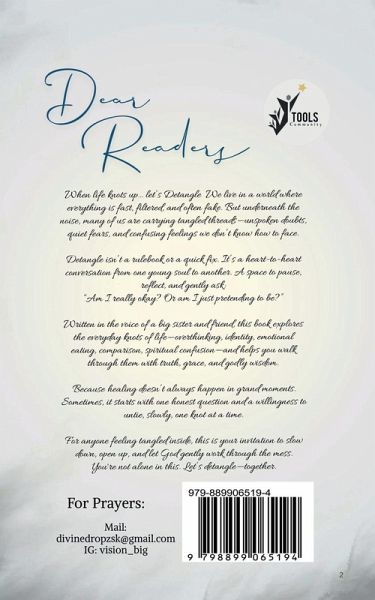 Detangle isn't a rulebook. It's not a list of dos and don'ts. It's a heart-to-heart-like a conversation with a big sister who doesn't pretend to have all the answers but knows how to sit beside you in the mess. Through honest reflections, Biblical truths, and real-life insights, this book helps you untie the knots of confusion, overthinking, emotional patterns, and misplaced beliefs. Whether you're navigating identity, comparison, purpose, or even food and faith-Detangle invites you to pause, breathe, and journey back to what truly matters.