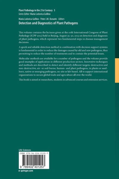 This book will cover a topic very important in the field of plant pathology, dealing with detection and diagnostics. This field of research is continuously moving forwards, due to innovation in techniques. The application of new detection and diagnostic technologies are relevant to many applied fields in agriculture.