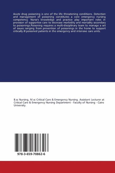 Acute drug poisoning is one of the life threatening conditions. Detection and management of poisoning constitutes a core emergency nursing competency. Nurse's knowledge and practice play important roles in provision of supportive care to decrease morbidity and mortality secondary to poisonings.Poisoning requires a multi-disciplinary team to manage a set of issues ranging from prevention of poisonings in the home to support critically ill poisoned patients in the emergency and intensive care units.