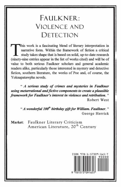 This work is a fascinating blend of literary interpretation in narrational form. Within the framework of a fiction a critical study takes shape that is basedon solid up to to date research (ninety-six entries appear in list of works cited) and will be of value to both serious Faulkner scholars and general academic readers alike, particularly those interested in mystery and detective fiction, southern literature, the works of Poe and, of course, the Yoknapatawpha novels.