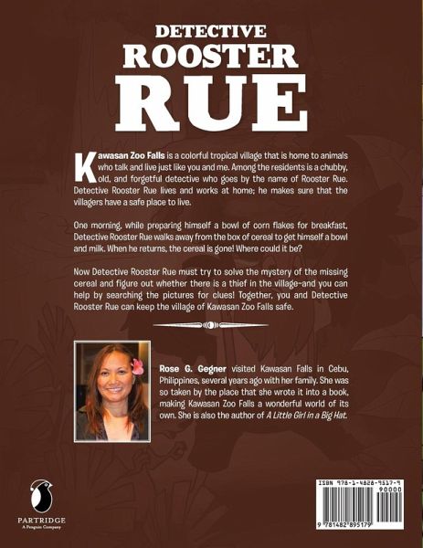 Kawasan Zoo Falls is a colorful tropical village that is home animals who talk and live just like you and me. Among the residents is a chubby, old, and forgetful detective who goes by the name of Rooster Rue. Detective Rooster Rue lives and works at home; he makes sure that the villagers have a safe place to live. One morning, while preparing himself a bowl of corn flakes for breakfast, Detective Rooster Rue walks away from the box of cereal to get himself a bowl and milk. When he returns, the cereal is gone! Where could it be? Now Detective Rooster Rue must try to solve the mystery of the missing cereal and figure out whether there is a thief in the village-and you can help by searching the pictures for clues! Together, you and Detective Rooster Rue can keep the village of Kawasan Zoo Falls safe.