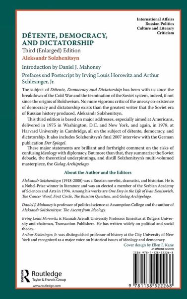 The subject of Detente, Democracy and Dictatorship has been with us since the breakdown of the Cold War and the termination of the Soviet system, indeed, if not since the origins of Bolshevism