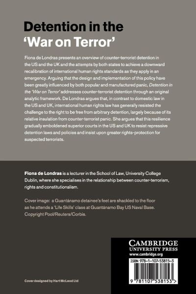 In this book, Fiona de Londras presents an overview of counter-terrorist detention in the US and the UK and the attempts by both states to achieve a downward recalibration of international human rights standards as they apply in an emergency. Arguing that the design and implementation of this policy has been greatly influenced by both popular and manufactured panic, Detention in the 'War on Terror' addresses counter-terrorist detention through an original analytic framework. In contrast to domestic law in the US and UK, de Londras argues that international human rights law has generally resisted the challenge to the right to be free from arbitrary detention, largely because of its relative insulation from counter-terrorist panic. She argues that this resilience gradually emboldened superior courts in the US and UK to resist repressive detention laws and policies and insist upon greater rights-protection for suspected terrorists.