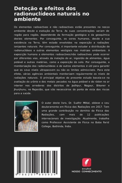 Os elementos radioactivos e não radioactivos estão presentes no nosso ambiente desde a evolução da Terra. As suas concentrações variam de região para região, dependendo da formação geológica e da geoquímica destes elementos. Por conseguinte, os seres humanos, desde a sua existência na Terra, têm estado envolvidos na exposição a radiações ionizantes naturais. Por conseguinte, é importante estudar a distribuição de radionuclídeos e outros elementos vestigiais nas matrizes ambientais. A exposição humana a elementos radioactivos/não radioactivos pode ocorrer por diferentes vias, através da inalação do ar, ingestão de alimentos, água potável e outras matérias, como a exposição do solo. Por conseguinte, a monitorização dos radionuclídeos e de outros elementos é útil para garantir que os seus níveis ultrapassem ou não os limites admissíveis. Para este efeito, várias agências ambientais monitorizam regularmente os níveis de radiações naturais. O principal objetivo do presente estudo baseia-se na avaliação do urânio e dos metais pesados na água potável e do rádon no ar interior nos arredores dos distritos de Jodhpur, Nagaur, Bikaner e Jhunjhunu, no Rajastão, que são necessários do ponto de vista dos riscos para a saúde.