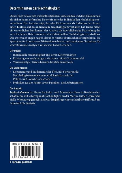 Dieses Buchbefasst sich mit Einflussfaktoren, insbesondere mit dem Einkommen, als bisherkaum erforschte Determinante des individuellen Nachhaltigkeitsverhaltens. DieAutorin zeigt, dass das Einkommen als Indikator der Armut einen Einfluss aufdas individuelle Nachhaltigkeitsverhalten hat. Dabei bildet ein wesentlichesFundament der Analyse die überblickartige Darstellung der verschiedenenDeterminanten des individuellen Nachhaltigkeitsverhaltens. Die Untersuchungenzeigen darüber hinaus überraschende Ergebnisse, die Spielraum für kontroverseDiskussionen bieten, und damit eine Grundlage für weiterführende Analysen aufdiesem Gebiet schaffen.