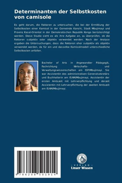Es geht darum, die Faktoren zu untersuchen, die bei der Ermittlung der Selbstkosten einer Kamisol in der Gemeinde Kanshi, Stadt Mbujimayi und Provinz Kasaï-Oriental in der Demokratischen Republik Kongo berücksichtigt werden. Diese Studie sieht es als ihre Aufgabe an, zu überprüfen, ob die Faktoren subjektiv oder objektiv verwendet werden. Nach der Analyse ergaben die Untersuchungen, dass die Faktoren eher subjektiv als objektiv verwendet werden, da für ein und dasselbe Kamisolmodell unterschiedliche Selbstkosten anfallen.
