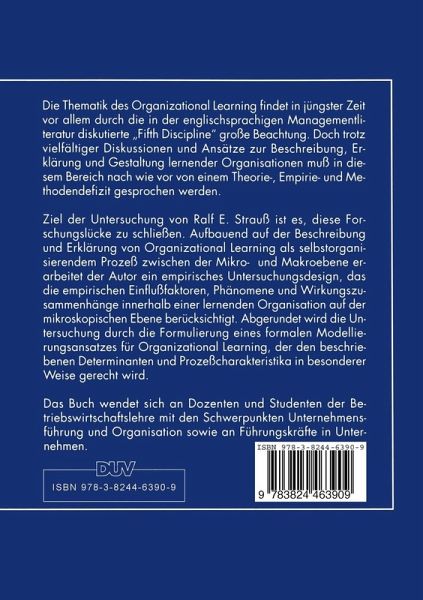 Die Thematik des "Organizational Learning" findet in jüngster Zeit vor allem durch die in der englischsprachigen Managementliteratur diskutierte "Fifth Discipline" große Beachtung. Doch trotz vielfältiger Diskussionen und Ansätze zur Beschreibung, Erklärung und Gestaltung "lernender Organisationen" muß in diesem Bereich nach wie vor von einem Theorie-, Empirie- und Methodendefizit gesprochen werden. Ziel der Untersuchung von Ralf E. Strauß ist es, diese Forschungslücke zu schließen. Abgerundet wird die Untersuchung durch die Formulierung eines formalen Modellierungsansatzes für Organizational Learning, der den beschriebenen Determinanten und Prozeßcharakteristika in besonderer Weise gerecht wird.