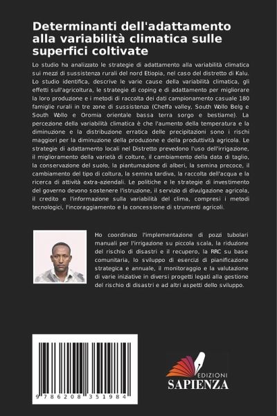 Lo studio ha analizzato le strategie di adattamento alla variabilità climatica sui mezzi di sussistenza rurali del nord Etiopia, nel caso del distretto di Kalu. Lo studio identifica, descrive le varie cause della variabilità climatica, gli effetti sull'agricoltura, le strategie di coping e di adattamento per migliorare la loro produzione e i metodi di raccolta dei dati campionamento casuale 180 famiglie rurali in tre zone di sussistenza (Cheffa valley, South Wollo Belg e South Wollo e Oromia orientale bassa terra sorgo e bestiame). La percezione della variabilità climatica è che l'aumento della temperatura e la diminuzione e la distribuzione erratica delle precipitazioni sono i rischi maggiori per la diminuzione della produzione e della produttività agricola. Le strategie di adattamento locali nel Distretto prevedono l'uso dell'irrigazione, il miglioramento della varietà di colture, il cambiamento della data di taglio, la conservazione del suolo, la piantumazione di alberi, la semina precoce, il cambiamento del tipo di coltura, la semina tardiva, la raccolta dell'acqua e la ricerca di attività extra-aziendali. Le politiche e le strategie di investimento del governo devono sostenere l'istruzione, il servizio di divulgazione agricola, il credito e l'informazione sulla variabilità del clima, compresi i metodi tecnologici, l'incoraggiamento e la concessione di strumenti agricoli.