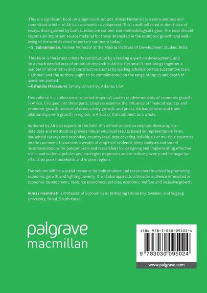 This volume is a collection of selected empirical studies on determinants of economic growth in Africa. Grouped into three parts, chapters examine the influence of financial sources and economic growth; sources of productivity growth; and prices, exchange rates and trade relationships with growth in regions in Africa or the continent as a whole. This edited book is authored by African experts in the field who employ diverse up-to-date data and methods to provide robust empirical results based on representative firms, household surveys and secondary country level data covering individuals or multiple countries on the continent. It contains a wealth of empirical evidence, deep analyses and sound recommendations for policymakers and researchers for designing and implementing effective social and national policies and strategies to prevent and to reduce poverty and its negative effects on poor households and in poor regions. The volume will be a useful resource for policymakers and researchers involved in promoting economic growth and fighting poverty. It will also appeal to a broader audience interested in economic development, resource economics, policies, economic welfare and inclusive growth.