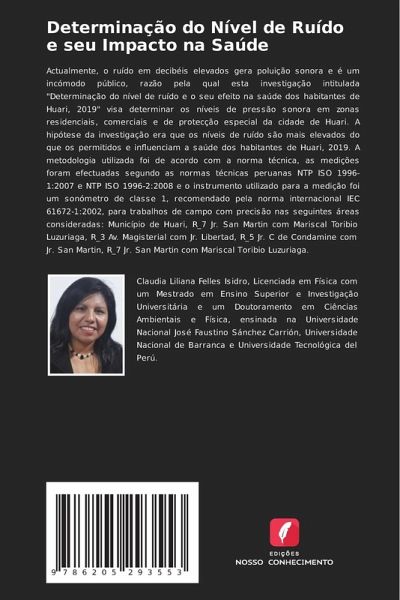 Actualmente, o ruído em decibéis elevados gera poluição sonora e é um incómodo público, razão pela qual esta investigação intitulada "Determinação do nível de ruído e o seu efeito na saúde dos habitantes de Huari, 2019" visa determinar os níveis de pressão sonora em zonas residenciais, comerciais e de protecção especial da cidade de Huari. A hipótese da investigação era que os níveis de ruído são mais elevados do que os permitidos e influenciam a saúde dos habitantes de Huari, 2019. A metodologia utilizada foi de acordo com a norma técnica, as medições foram efectuadas segundo as normas técnicas peruanas NTP ISO 1996-1:2007 e NTP ISO 1996-2:2008 e o instrumento utilizado para a medição foi um sonómetro de classe 1, recomendado pela norma internacional IEC 61672-1:2002, para trabalhos de campo com precisão nas seguintes áreas consideradas: Município de Huari, R_7 Jr. San Martin com Mariscal Toribio Luzuriaga, R_3 Av. Magisterial com Jr. Libertad, R_5 Jr. C de Condamine com Jr. San Martin, R_7 Jr. San Martin com Mariscal Toribio Luzuriaga.