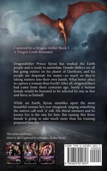 NYT & USAT BESTSELLING AUTHOR He's a dragon-shifting prince, and she's a human. What could possibly go wrong? Dragon-shifter Prince Kyran has studied the Earth people and is ready to assimilate. Female shifters are all but going extinct on his planet of Qurilixen, and his people are desperate for mates-so much so they're taking matters into their own hands. What better place to capture a woman than Earth? After all, dragon-shifters had come from there centuries ago. Surely a human female would be honored to be selected by one as fine and fierce as himself? While on Earth, Kyran stumbles upon the most beautiful woman he's ever imagined, singing something the natives call rock 'n' roll. His blood simmers and he knows Eve is the one for him. But taming this feisty female is going to take much more than his training prepared him for. Dragon Shapeshifter Paranormal, Science Fiction, Fantasy, Alien Romance Part of the Qurilixen World