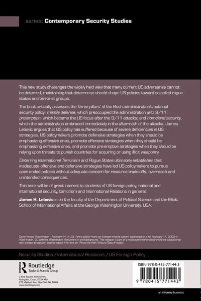 This new study challenges the widely held view that many current US adversaries cannot be deterred, maintaining that deterrence is not a relic of the Cold War period and that it should shape US policies toward so-called 'rogue states' and terror groups. James Lebovic argues that deterrence principles continue to apply, and focuses upon the 'three pillars' of the Bush administration's national security policy: missile defence, which preoccupied the administration until September 11, 2001 pre-emption, which became the US focus with the September 11 attacks and US success in overthrowing the Taliban regime in Afghanistan homeland security, which the administration has portrayed as more a natural response to threat than an aspect of policy that must be reconciled with the other pillars. Deterring International Terrorism and Rogue States asserts that bad offences and defences have been endemic to the current US policy approach, leading US policy makers to pursue policies that require them to do everything without adequate concern for resource trade-offs, overreach, and unintended consequences. This book will be of great interest to students of US foreign policy, national and international security, terrorism and international relations in general.