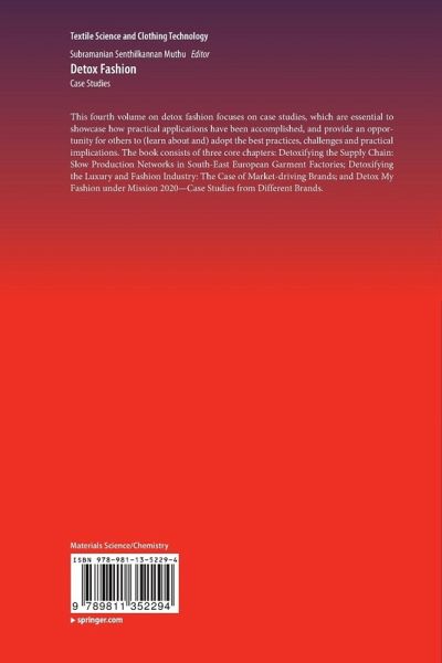 This fourth volume on detox fashion focuses on case studies, which are essential to showcase how practical applications have been accomplished, and provide an opportunity for others to (learn about and) adopt the best practices, challenges and practical implications. The book consists of three core chapters: Detoxifying the Supply Chain: Slow Production Networks in South-East European Garment Factories; Detoxifying the Luxury and Fashion Industry: The Case of Market-driving Brands; and Detox My Fashion under Mission 2020-Case Studies from Different Brands.