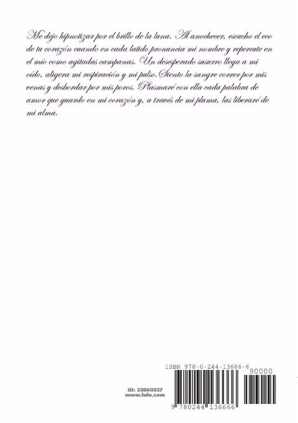 Es un poemario donde he dejado fluir cada sentimiento de desolación, tristeza y dolor; pero, principalmente de amor. Lo he escrito con el corazón en la mano para quitar fantasmas del pasado y enfrentarme a mis tormentos. He logrado a través de estas letras conectar con el interior de mi alma, en ella descubrí las más sinceras emociones que escondía detrás de la mirada. En este poemario he intentado dejar un halo de esperanza.