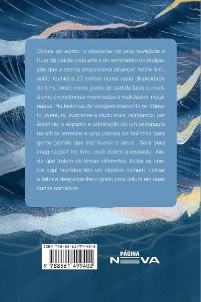 Detrás do sonho: o despertar de uma realidade é fruto da paixão pela arte e do sentimento de realização que a escrita proporciona alcançar. Neste livro, estão reunidos 23 contos numa vasta diversidade de tons, tendo como ponto de partida fatos do cotidiano, experiências vivenciadas e realidades imaginadas. Há histórias de congestionamento