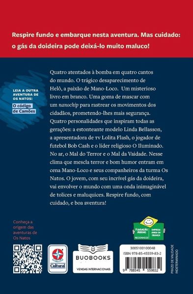 Uma série de atentados ao redor do mundo deixa a humanidade em pânico. As autoridades entram em ação, mas, em meio a esse clima de incerteza e desconfiança, desaparece Helô, integrante do grupo de missões especiais Os Natos. Mano-Loco, com seu gás da doideira, entra em ação e vai aprontar mundo afora, enlouquecendo as grandes celebridades. Quem estaria por trás desses atentados? Conseguiriam Os Natos enfrentar tanta gente poderosa? Nessa história de aventura e suspense, o leitor mergulhará no mundo da vaidade, no qual o que vale é a aparência.