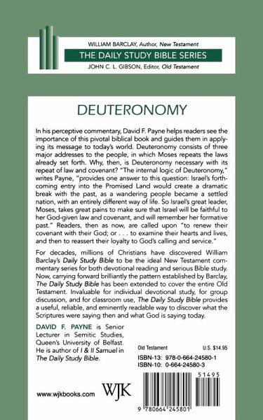 In his perceptive commentary, a part of the Daily Study Bible series, David F. Payne helps readers see the importance of this pivotal biblical book and guides them in applying its message to today's world. Carrying forward brilliantly the pattern established by Barclay's New Testament series, the Daily Study Bible has been extended to cover the entire Old Testament as well. Invaluable for individual devotional study, for group discussion, and for classroom use, the Daily Study Bible provides a useful, reliable, and eminently readable way to discover what the Scriptures were saying then and what God is saying today.