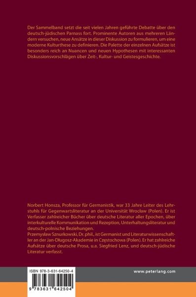 Der Sammelband setzt die seit vielen Jahren geführte Debatte über den deutsch-jüdischen Parnass fort. Prominente Autoren aus mehreren Ländern versuchen, neue Ansätze in dieser Diskussion zu formulieren, um eine moderne Kulturthese zu definieren. Die Palette der einzelnen Aufsätze ist besonders reich an Nuancen und neuen Hypothesen mit interessanten Diskussionsvorschlägen über Zeit-, Kultur- und Geistesgeschichte.